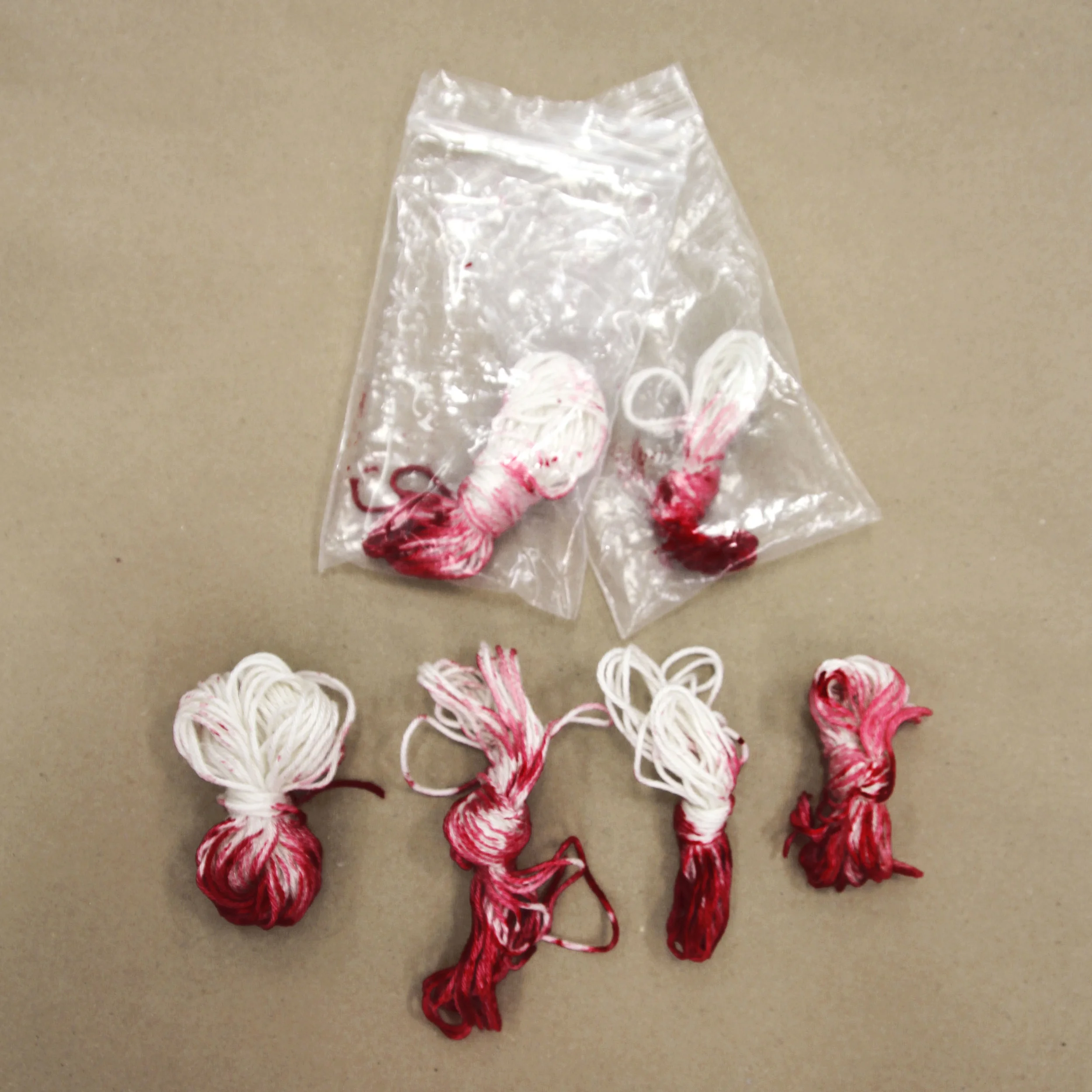 With more and more mixed race and same gender couples finding their way into the the public the underground Eugenics Cult, XXY is vastly growing, finding the best set of genetics while maintaing "pure bred" status. Although technology is booming and the ability to preserve genetic material is more easily accessible to the general public, XXY places upmost importance in hiding from the public eye. As a way to keep their members loyal and organized within the system, each member is asked to bundle string and soak it with their own blood in order to keep a log of their members' and their DNA for future cloning potential. The ritualistic behavior not only binds the groups goals in preserving a purebred illness free society but also helps create a manual log of their members. This behavior signified, not only, loyalty to the cult, but contribution to a "better" society pushing the boundaries of the term "blood brothers".